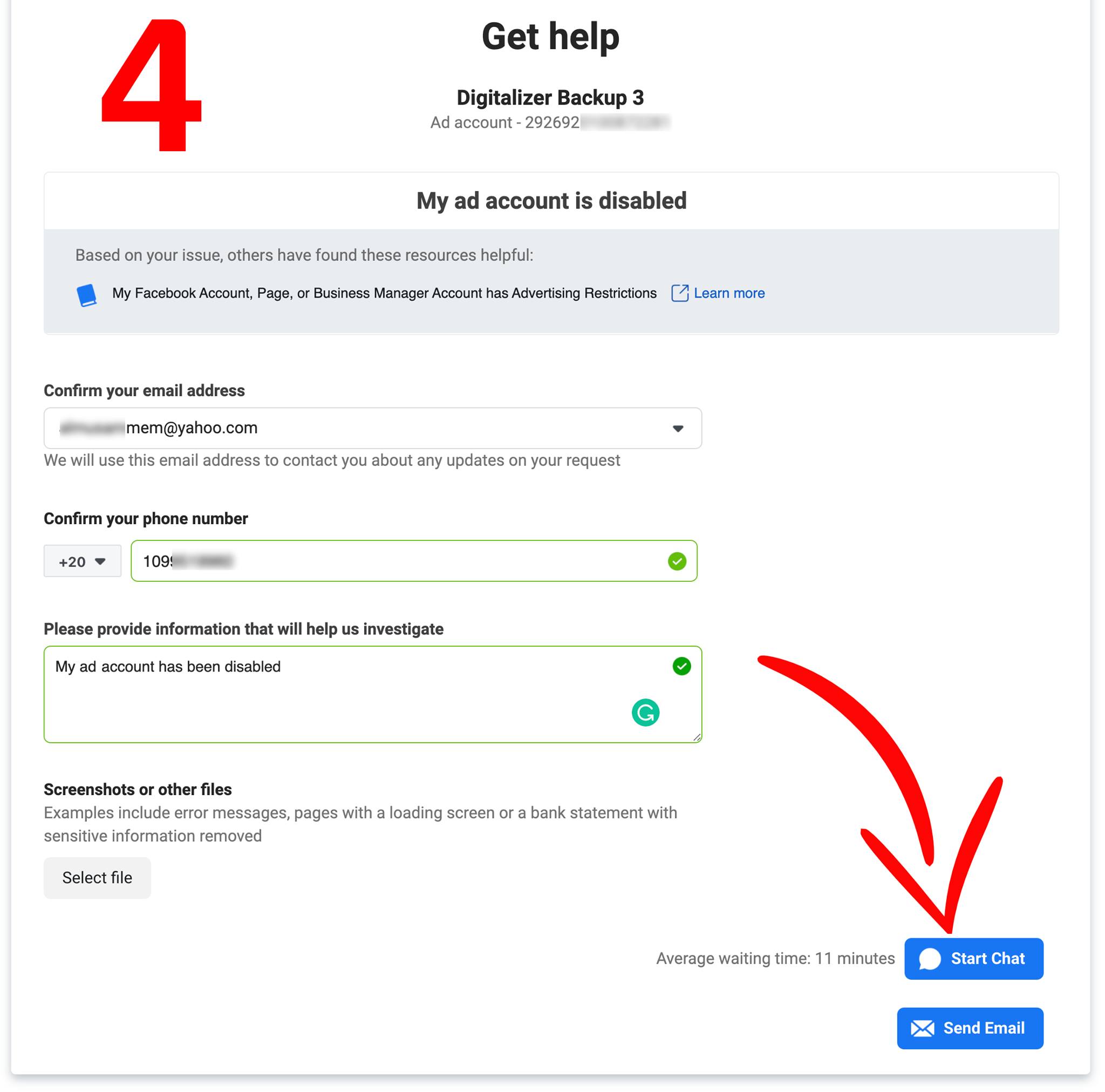 3. طريقة تالتة خاصة بالحسابات الإعلانية الموقوفة:
